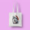 Άσπρη τσάντα με εκτύπωση ”χριστουγεννιάτικος σκύλος μαύρο Bull dog”