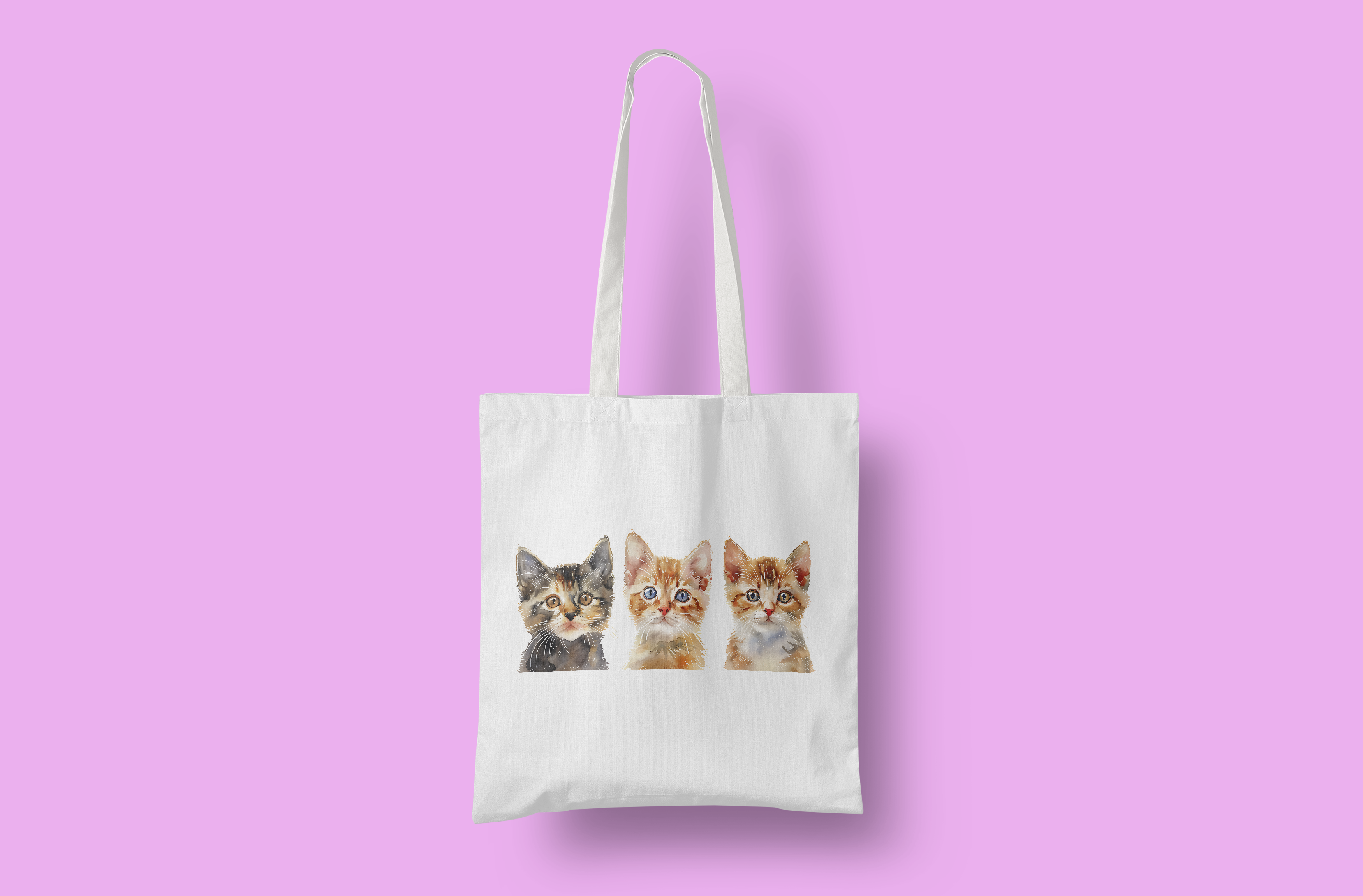 Άσπρη τσάντα τύπου tote bag με 1 όψη εκτύπωση με θέμα 3 μικρόσωμα γατάκια 100% βαμβάκι