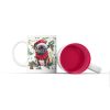 Κεραμική άσπρη κούπα 11oz με κόκκινο χρώμα στο εσωτερικό της χριστουγεννιάτικος σκύλος με σκούφο