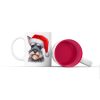 Κεραμική άσπρη κούπα με κόκκινο χρώμα στο εσωτερικό χριστουγεννιάτικος σκύλος με κόκκινο σκούφο