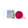 Κεραμική άσπρη κούπα 11oz με κόκκινο χρώμα εσωτερικά με χριστουγεννιάτικη ετικέτα χιονόμπαλα & χιονάνθρωπος