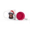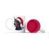 Κεραμική άσπρη κούπα με κόκκινο χρώμα στο εσωτερικό της με θέμα χριστουγεννιάτικος σκύλος Bulldog με κόκκινο σκούφο.