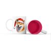 Κεραμική άσπρη κούπα 11oz κόκκινο χρώμα στο εσωτερικό της με χριστουγεννιάτικο χάσκι με κόκκινο σκούφο.
