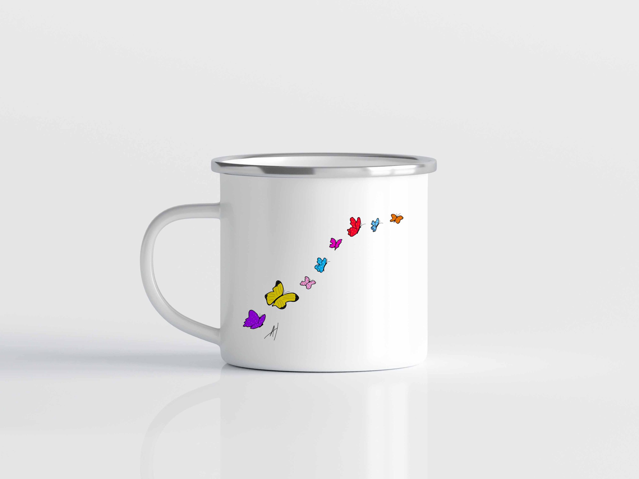 κούπα εμαγιε με σχέδιο πεταλούδες
