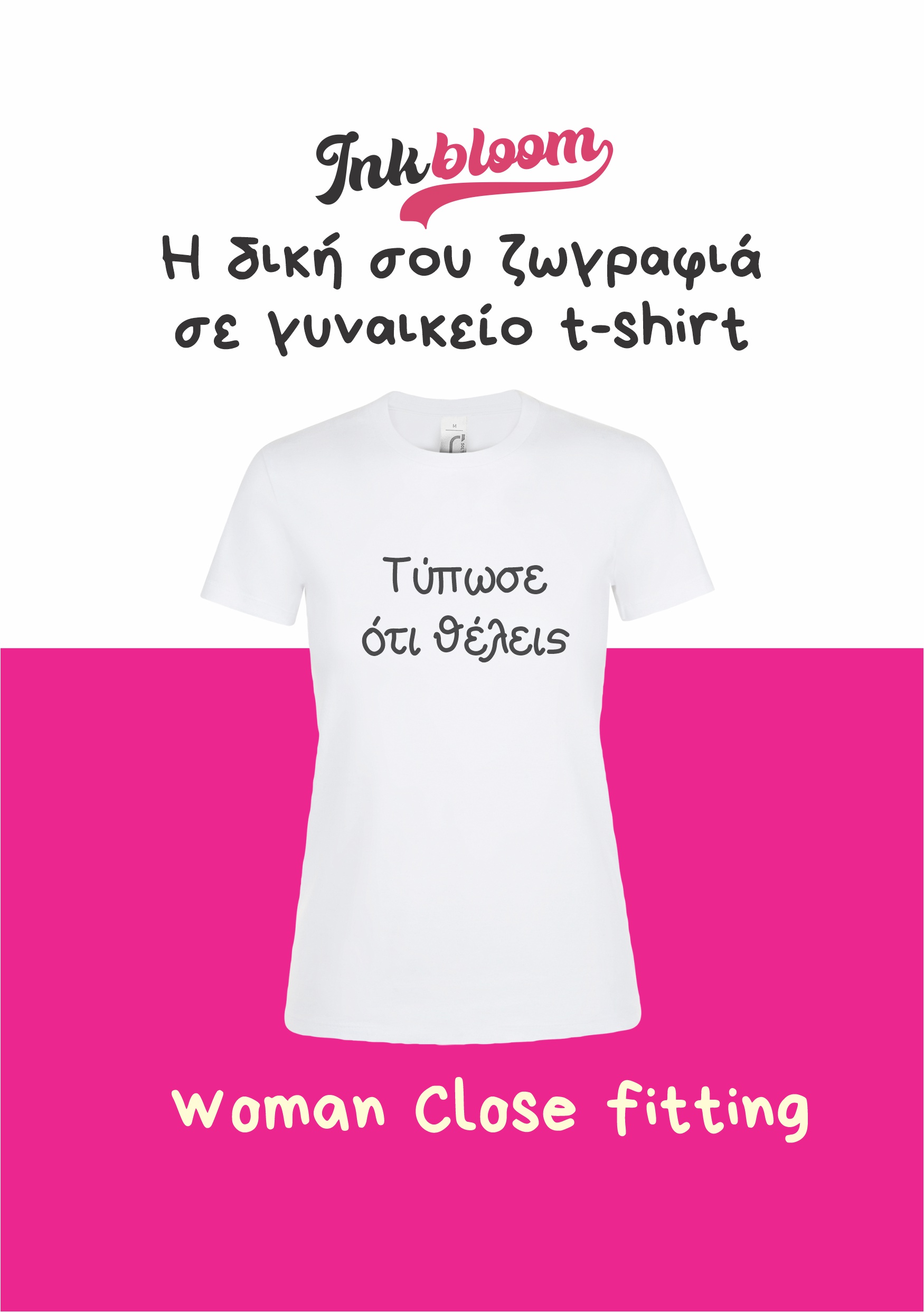 Στην Inkbloom μπορείτε να δημιουργήσετε το δικό σας μοναδικό σχέδιο και να το αποτυπώσετε σε ένα κλασικό και κομψό γυναικείο t-shirt.